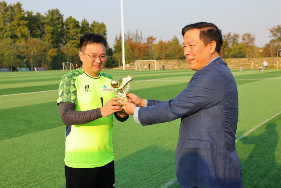金色的奖杯在夕阳下闪耀,金色的奖牌在胸前发光。盛桂浩副总裁为获奖队伍及个人颁奖。他表示,此次比赛各队表现都非常精彩、出色,不仅为8868体育三十周年庆典系列活动拉开了序幕,更展现出8868体育人的良好精神风貌。接下来集团还将组织羽毛球、篮球等丰富多样的文体赛事,希望大家踊跃参赛并通过比赛,增强联动、凝聚力与合作交流。